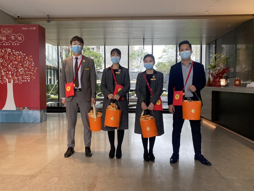 新房事业部|礼抚人心,共迎新春,方圆生活服务集团2022年春节值班员工慰问活动来啦!时间:2022-01-27 1月26日,方圆生活服务集团2022年春节值班员工慰问活动正式开启!来自新房事业部、诚汇事业部各项目售楼中心的值班小伙伴陆续收到专属新春礼盒!本次活动旨在为假期依然兢兢业业的小伙伴送上最诚挚的感谢和祝福,礼抚人心,共度佳节! 千门万户曈曈日,总把新桃换旧符。新春佳节即将到来,不少人已经踏上了回家的路途,为了持续向广大客户及伙伴提供更好的服务方圆生活集团旗下多个项目的同事春节期间依然坚守岗位,持续奋斗!